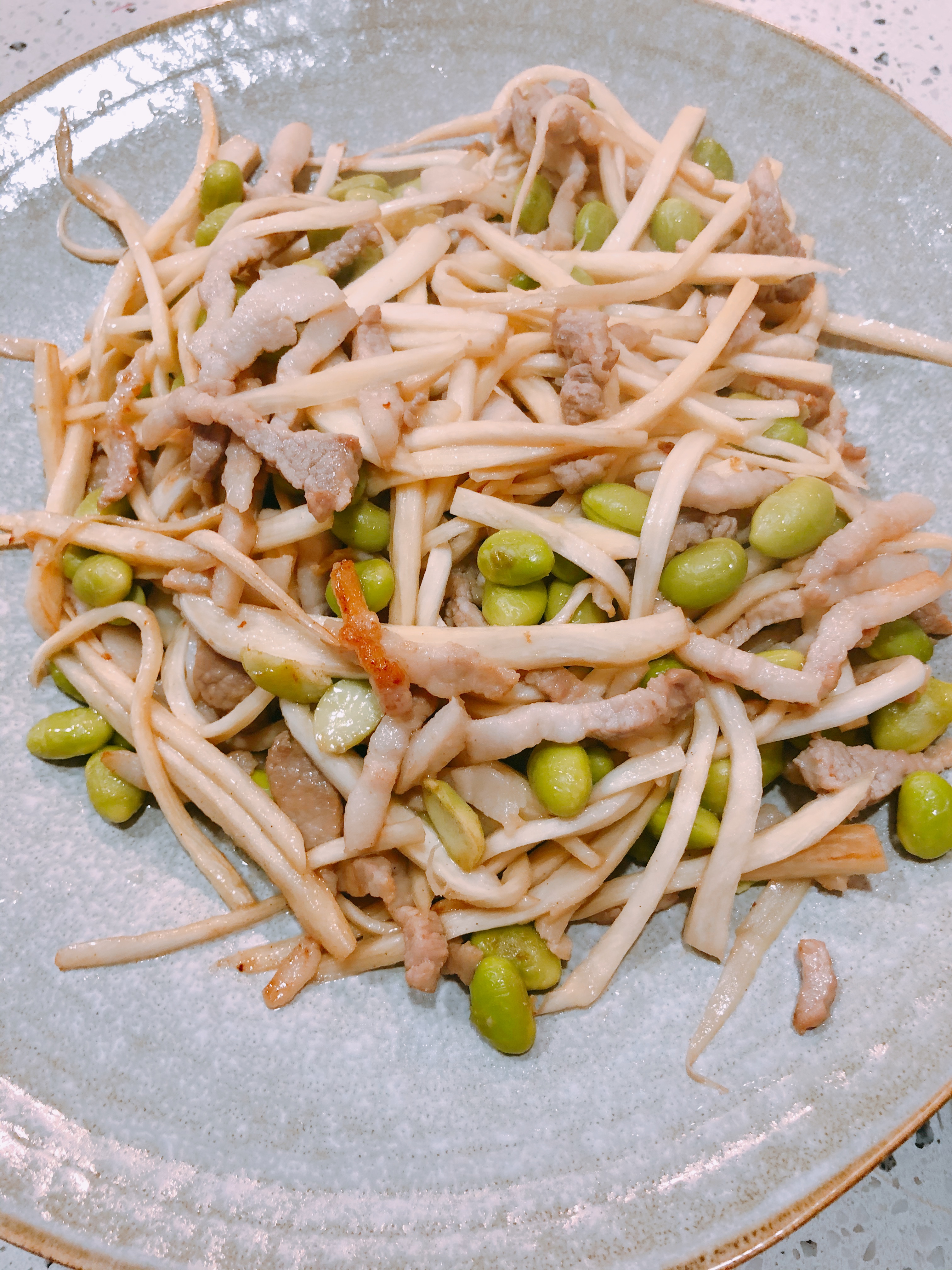 果然是时令蔬菜,再来超市时就已不见踪迹。不过好在发现了网购渠道,又下单一回,还邀请了从未感受过新鲜茭白风味的东北小伙也来尝个鲜——茭白、毛豆和肉丝的完美组合,好评。