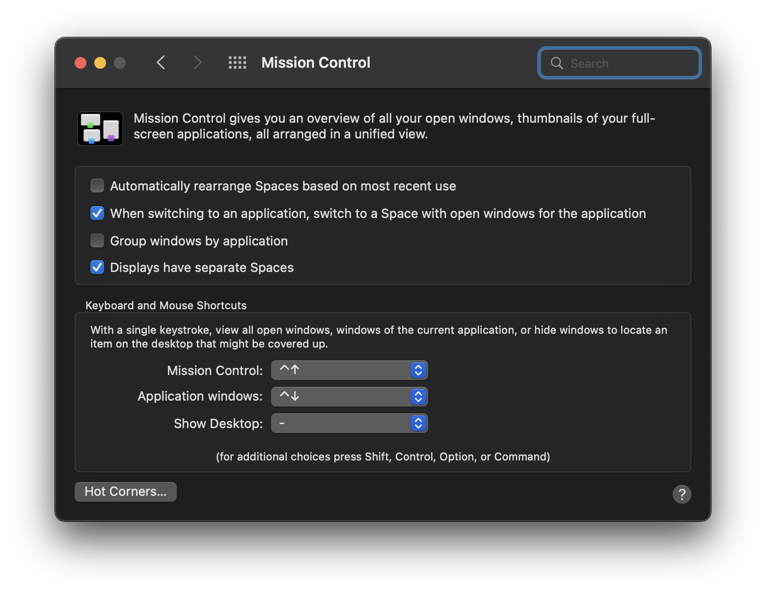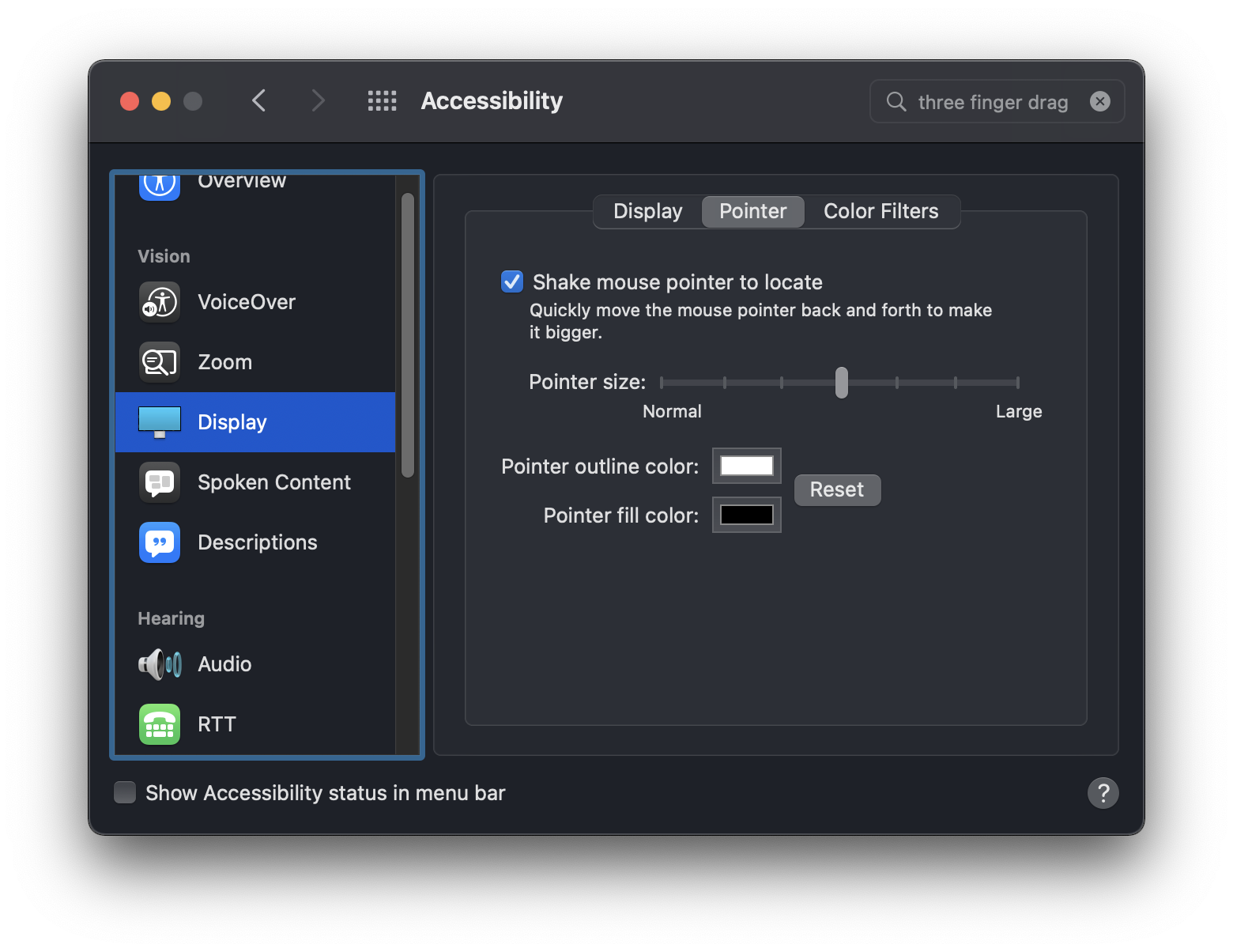 Appearance: Dark Show scroll bars: Always Click in the scroll bar to: Jump to the spot that’s clicked