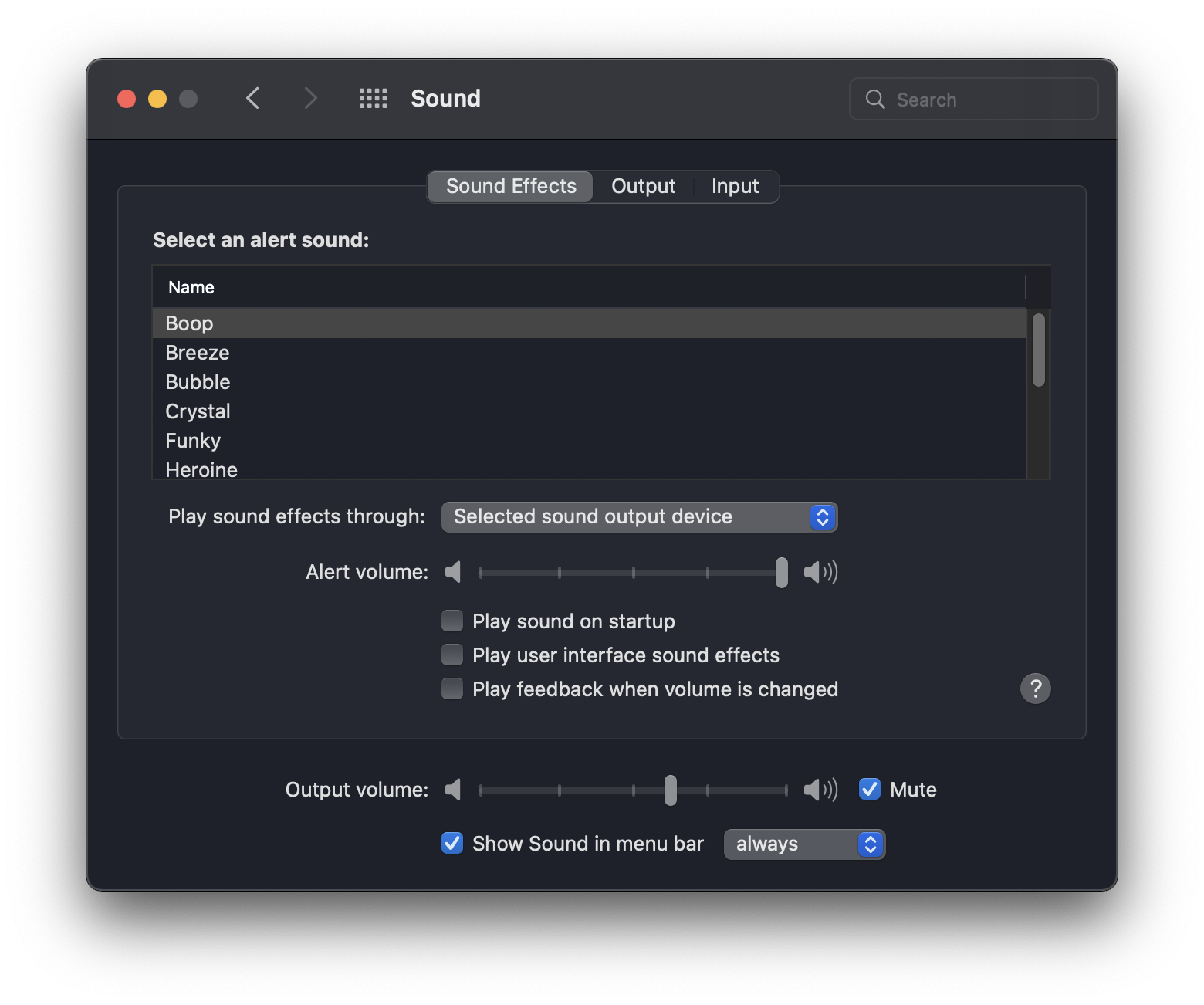 Sound Effects Play sound on startup: Off Play user interface sound effeects: Off