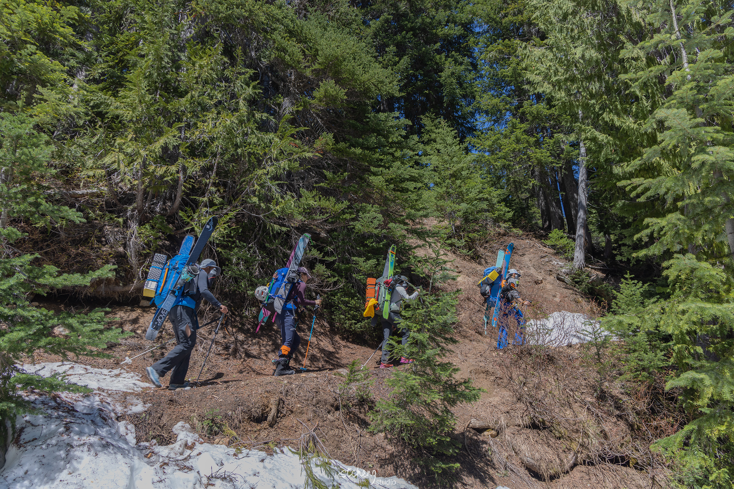 Within the confines of the Inter Glacier, the snow was softer yet still suitable for riding. Thanks to our reliable snow gear, we managed to return to our original transition point without much delay. After an additional hour or so of weary walking down the trail, we finally reached our car around 8PM!