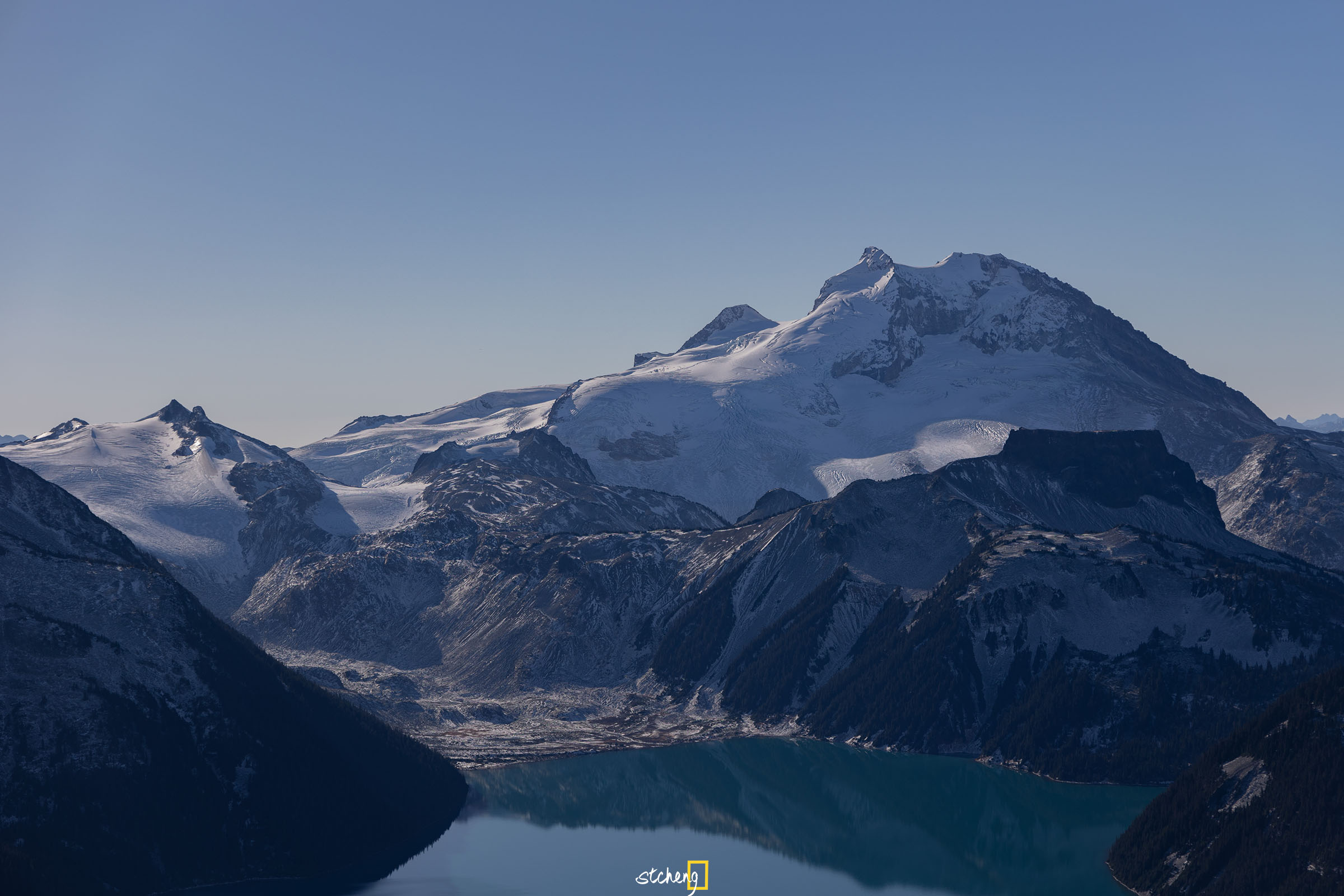 Mount Tantalus rises like a colossal wall, with Garibaldi Lake sprawling in the foreground.