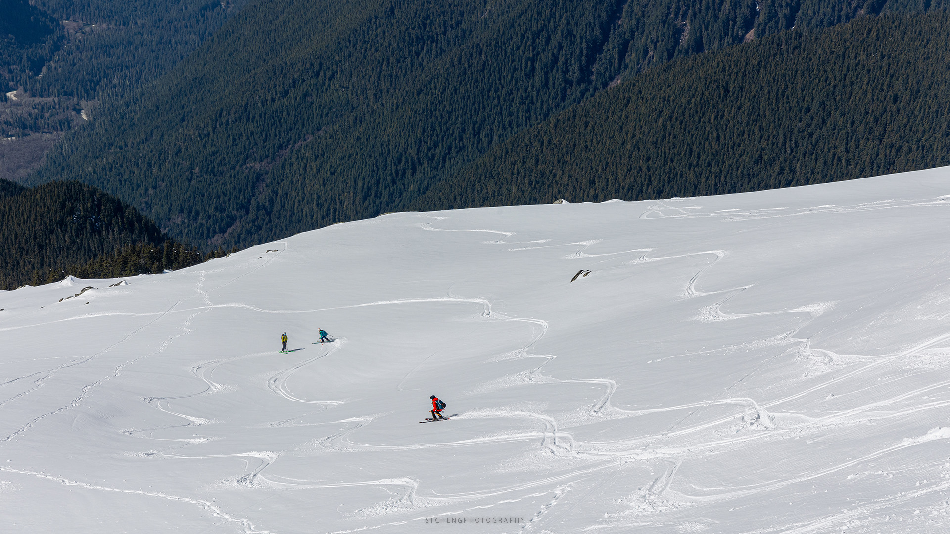 After another hour or two, we arrived at the ridge of Hidden Lake Peak, approximately 6,200 feet in elevation. Before heading up to the summit, there was a bit of drama when a friend accidentally dropped one of his skis. The ski brake wasn’t released or leashed, and it shot down into the gully, disappearing from sight. Just when we thought we might have to end our day early, someone surprisingly found it and carried it back up! We were incredibly lucky to have someone find and return the ski.