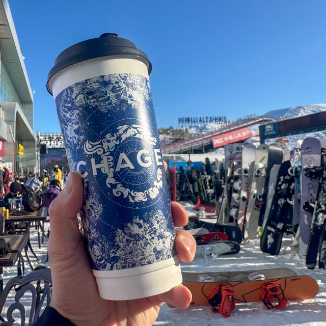 国内滑雪最满足的当属吃——山脚下的霸王茶姬的pop-up,雪场餐厅各式各样的美食,再加上这个国内物价,简直吊打世界任何其他雪场。当晚直接转场,坐上小巴士,一路向东去往可可托海。