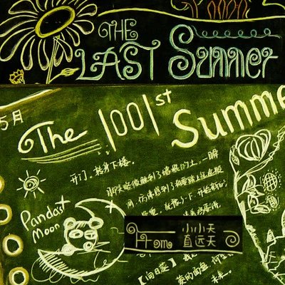 再往前,还有着略带未知感的对最后一个暑假的祭奠——前年5月写下的“The 1001st Summer”和之后的那个“The Last Summer”,夏天啊,怪不得都是粉笔的尘埃而鲜有颜料混杂涂上去的感觉吧。整一块黑板像是浅浅蒙着粉笔的碎屑,心绪也像是不定的光,胡乱闪烁着。那几个简单的署名好像已经是历史了吧,游走在天涯。 猪猪依然继续着它的幸福时光,而Life is a Oneway Street。