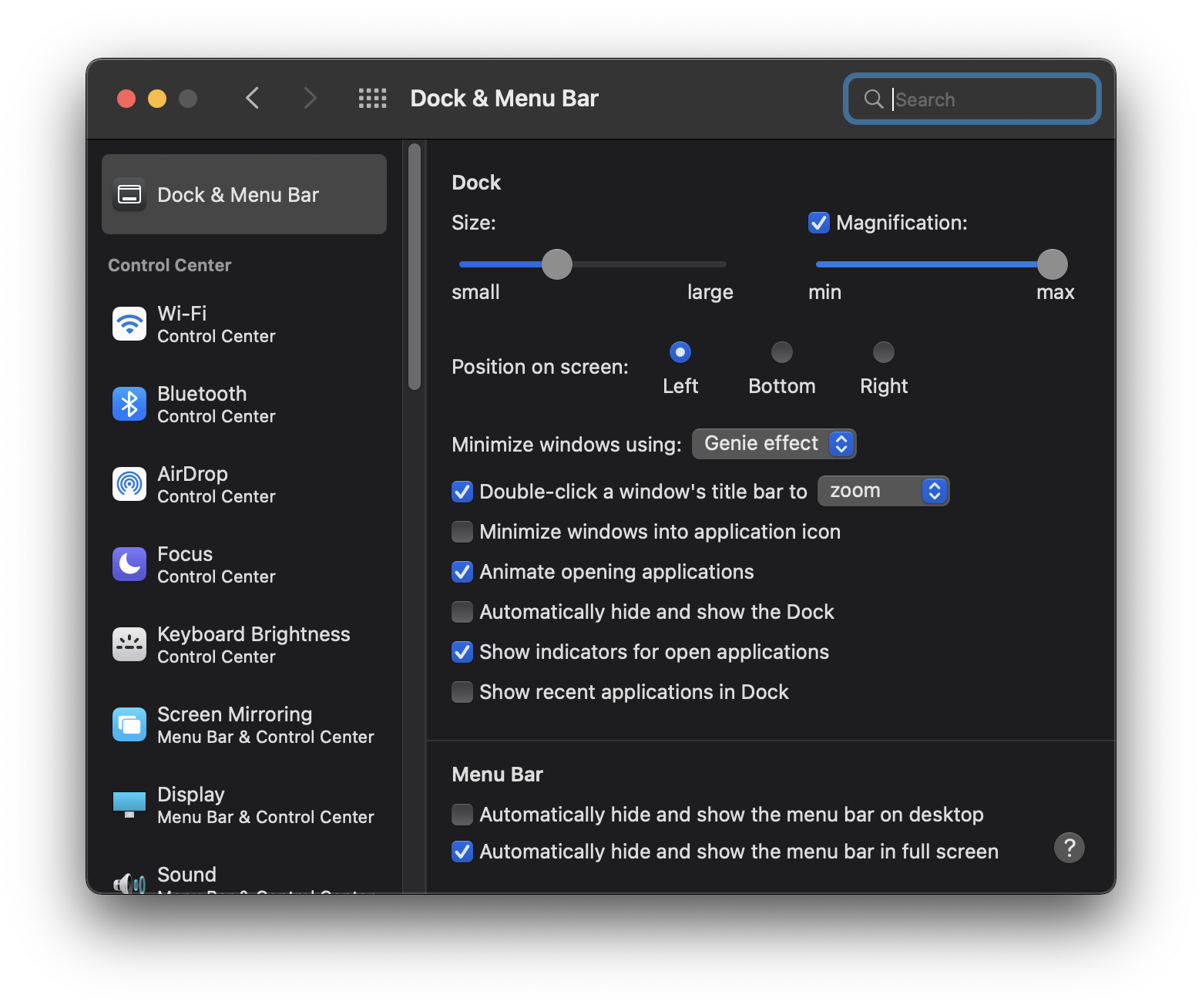 I used to put the dock at the bottom of the screen, but now I am used to put it at the left.
