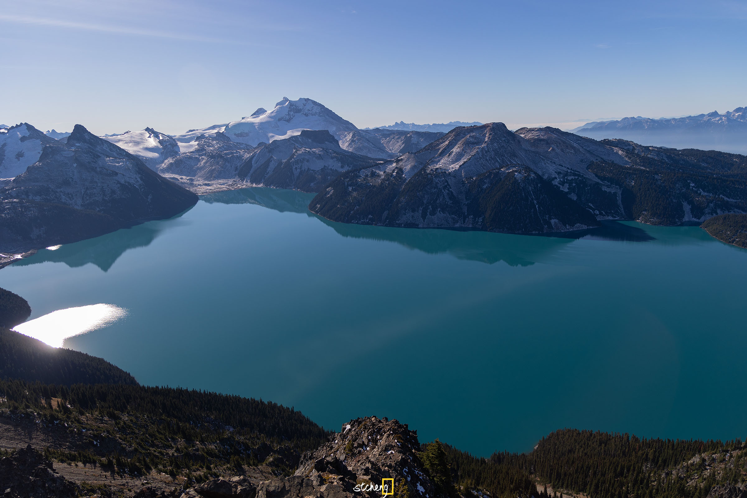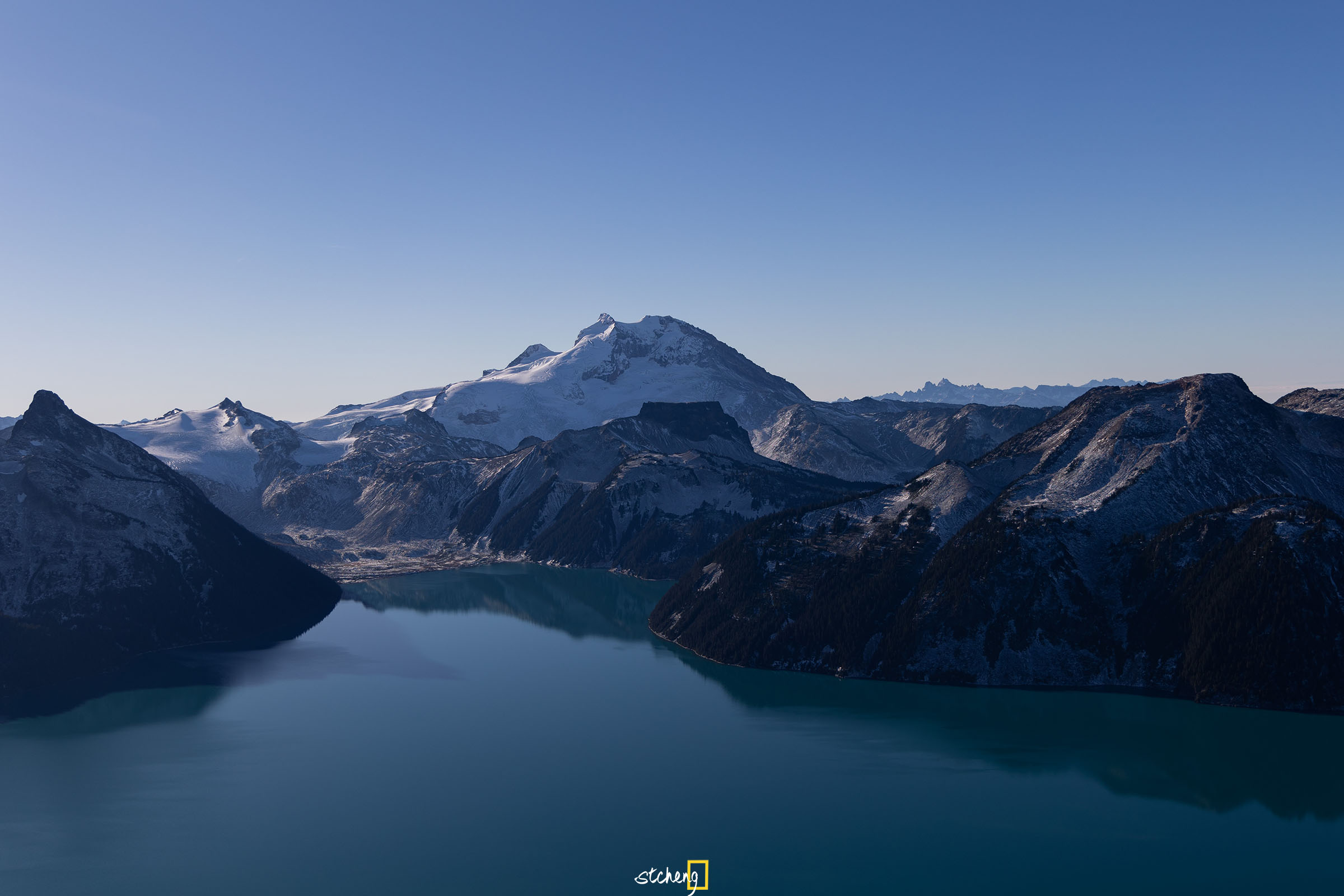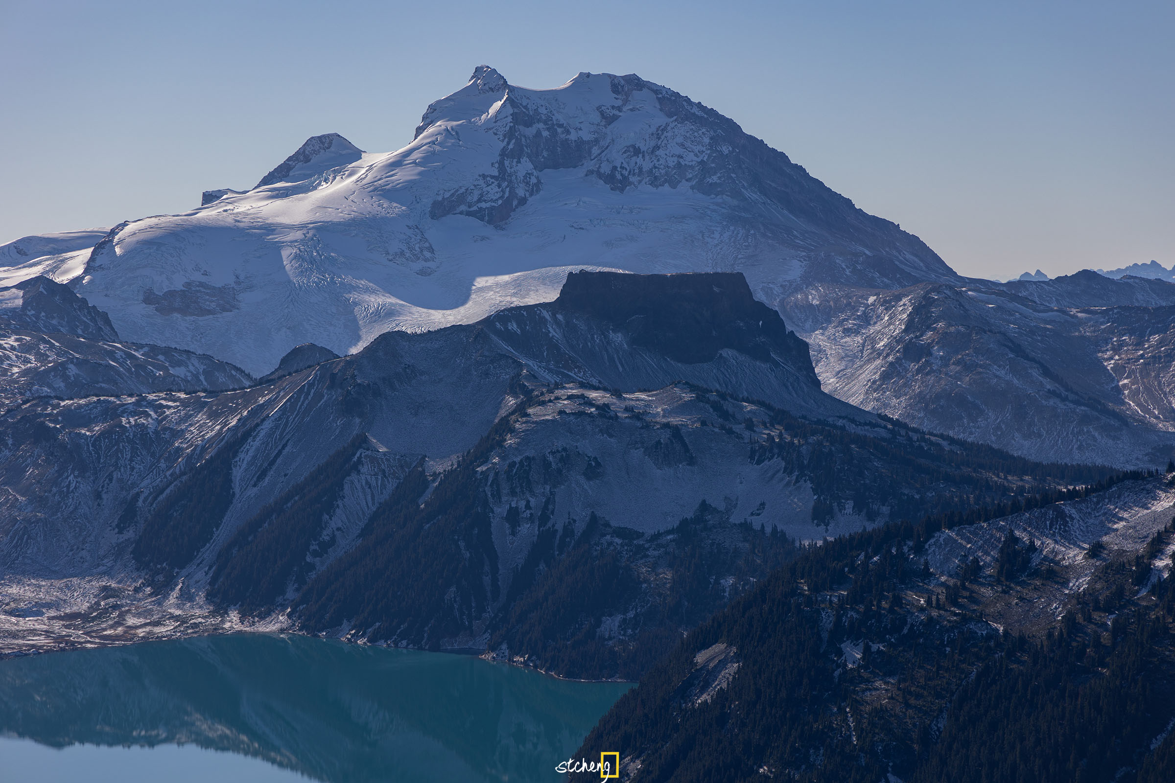 Mount Tantalus rises like a colossal wall, with Garibaldi Lake sprawling in the foreground.