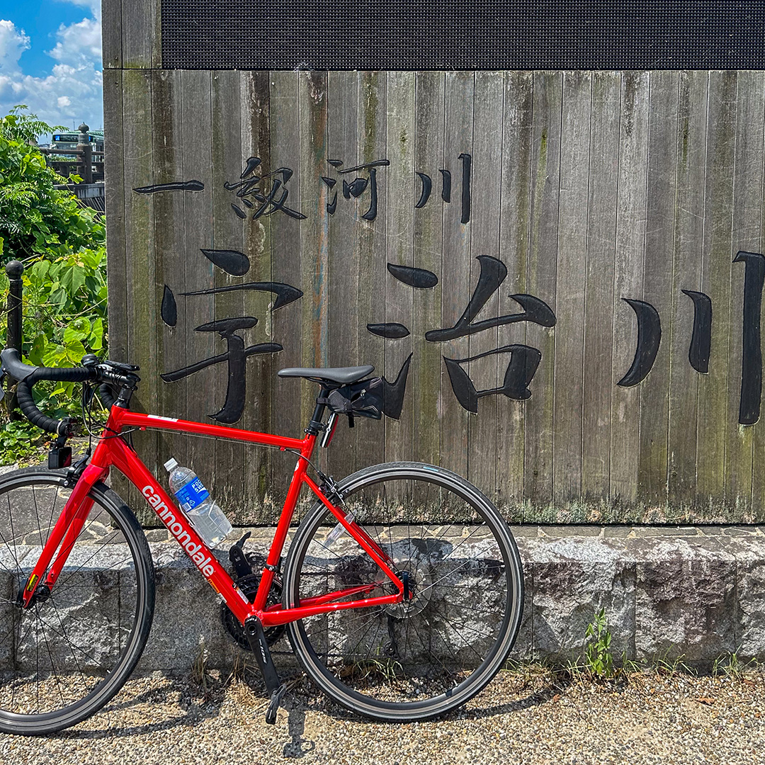 The route began at the Road Bike Rental Japan shop in Osaka and followed the Yodogawa River 淀川 and other smaller rivers toward Arashiyama 嵐山. The bike trail was well-maintained, offering two options: riding along the high bank or the lower path at the bank’s foot. On one side were sports fields filled with students training for soccer or baseball, and on the other was a lush green slope. Suddenly, the scenes I had seen in anime came to life: the vivid greens, blues, and yellows, the deafening cicadas chirping from bushes and trees offering no shade, and the succession of bridges casting fleeting shadows where I could pause, sip water, and catch my breath.